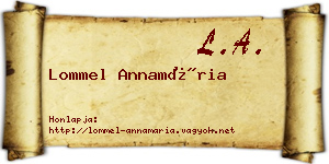 Üdvözöljük LOMMEL ANNAMÁRIA névelemző oldalon. Figyelem - ez az oldal Lommel Annamária nevet és nem pedig L. A. személyt elemzi!